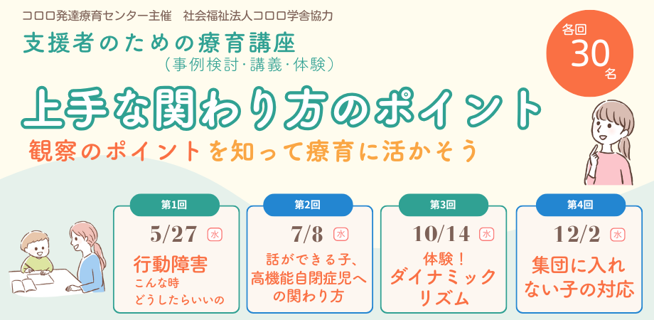 コロロ発達療育センター主催・社会福祉法人コロロ学舎協力2026年・連続4回セミナー(事業所見学・活動体験&講義)「支援者のための療育講座」上手な関わり方のポイント~観察のポイントを... powered by Peatix : More than a ticket.