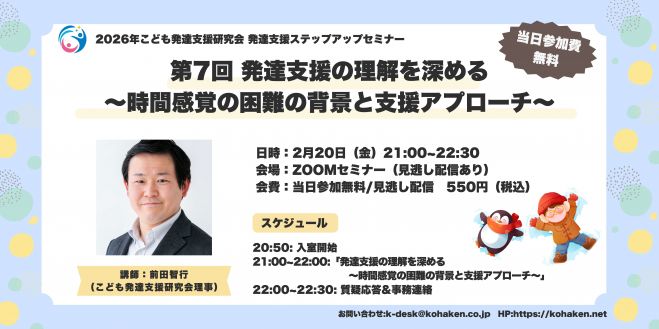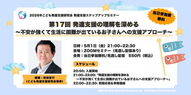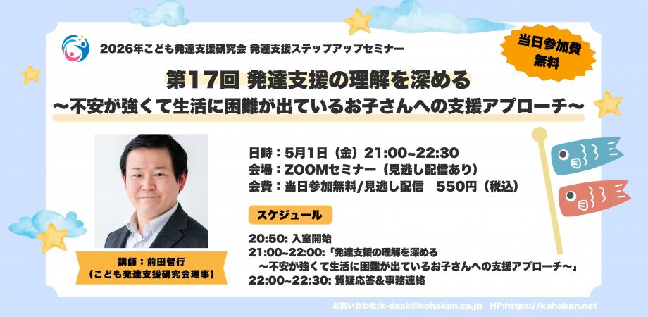 不安の強さから日常生活に困難を抱えるお子さんへの支援をテーマにした無料セミナーを開催します。 発達障害等の特性を持つお子さんの中には、特有の認知特性や感覚過敏が原因で、周囲が想像... powered by Peatix : More than a ticket.