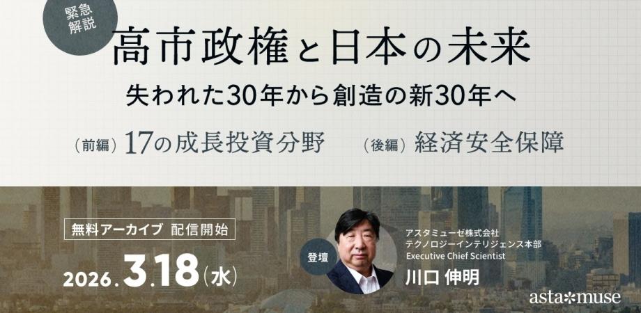 アスタミューゼ株式会社(本社:東京都千代田区、代表取締役:永井歩)は、2026年2月19日および2月26日に開催した緊急解説ウェビナー「高市政権と日本の未来」を、2026年5月28... powered by Peatix : More than a ticket.