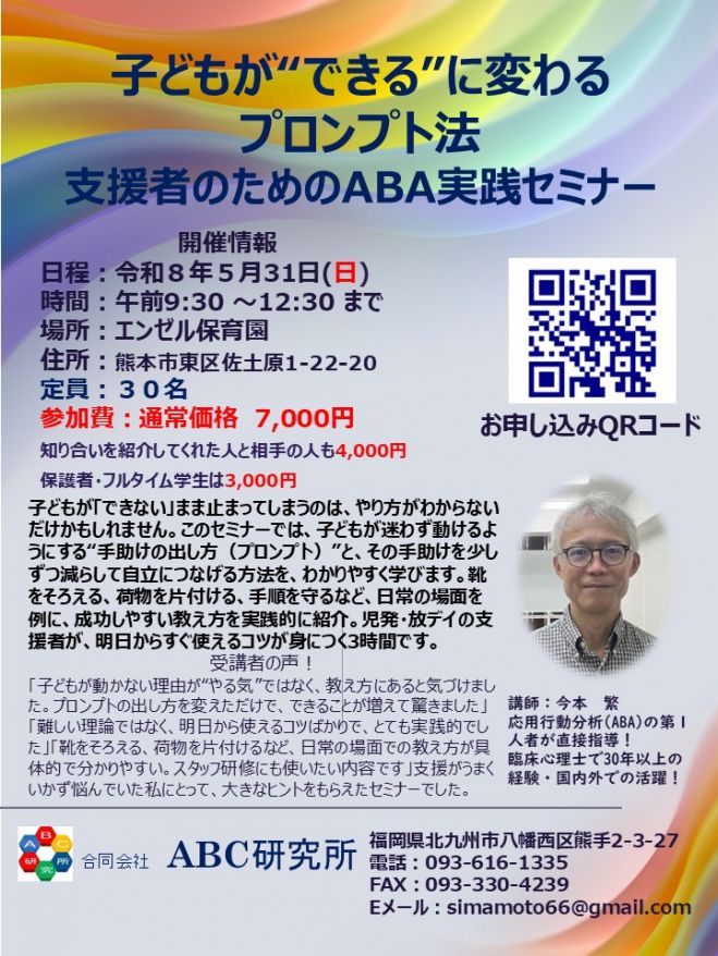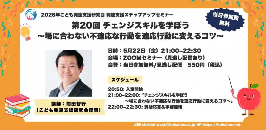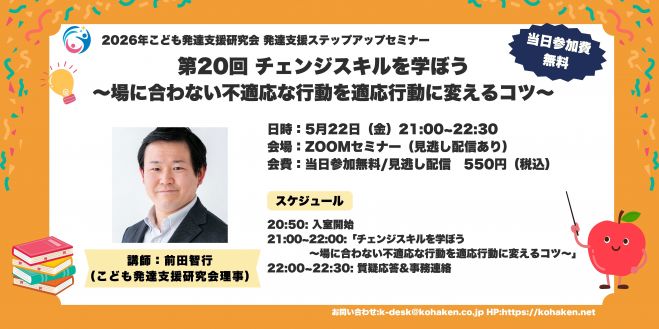 本セミナーでは、応用行動分析(ABA)における代替行動支援をベースに、現場で使いやすくアレンジした「チェンジ・スキル」のノウハウを解説します。チェンジ・スキルは、従来の「無視(ス... powered by Peatix : More than a ticket.