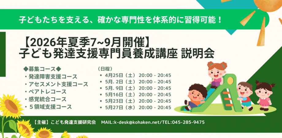 こちらは、子ども発達支援専門員養成講座の説明会の案内ページとなります。※養成講座の概要はこちら日時:ご都合の良い時間にお申し込みください。 4月25日(土)20:00~20:45... powered by Peatix : More than a ticket.