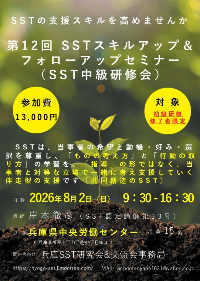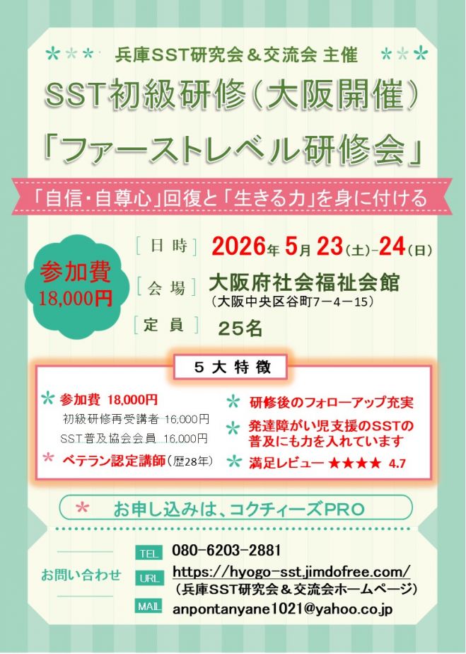病院(入院、デイケア)、訪問支援、成人障害者福祉、児童療育、放課後等デイサービス、学校教育、司法(更生保護)等におけるSSTの進め方の基本を学びます!