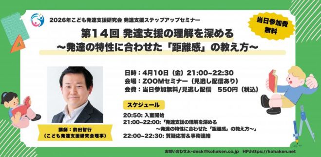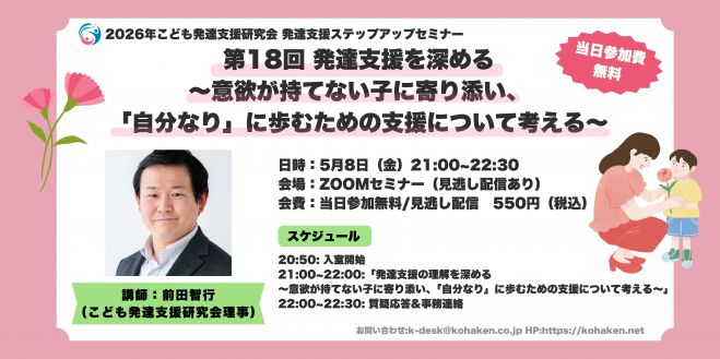 日時 2026年5月10日(日)受付13:45~ 開始14:00~終了16:10 場所 ハイブリッド開催【Online&現地】 1.私はこの教材で助けられました!発達障がい児が熱中... powered by Peatix : More than a ticket.