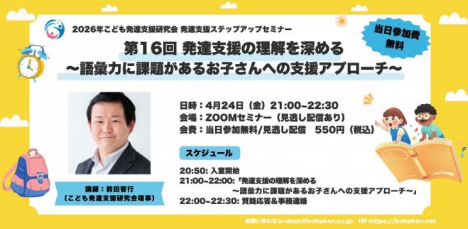 特別支援教育において、身体、認知、社会性、言語といった各領域の発達バランスや、発達の順序の入れ替わり、あるいは「飛ばし」といった背景を把握することは重要です。近年は標準化された検... powered by Peatix : More than a ticket.