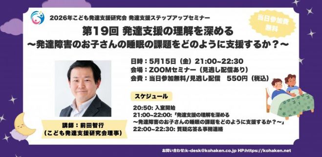 発達障害のあるお子さんの多くが、入眠困難や中途覚醒、朝起きられないといった睡眠の課題を抱えています。これらは単なる生活習慣の乱れではなく、感覚過敏や発達特性に起因する体質的な影響... powered by Peatix : More than a ticket.