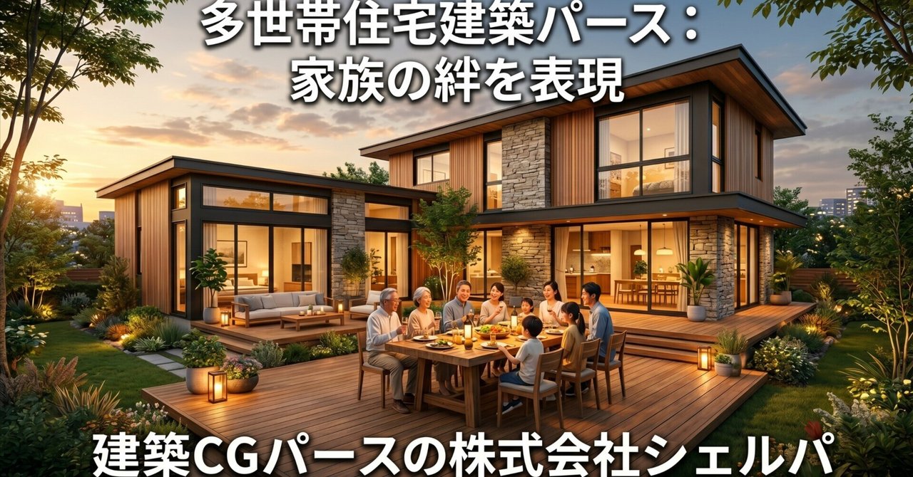 こんにちは! 株式会社シェルパ(sherpa-cg.com)のパース制作を担当している近藤です。 みなさんは「多世帯住宅」と聞いて、どのような住まいを想像するでしょうか。 親世帯、子世帯、そして孫世帯がひとつ屋根の下、あるいは敷地内でともに暮らす多世帯住宅は、家族の温かな絆を深める素晴らしい住まいのカタチです。 しかしその一方で、世代の異なる家族がそれぞれのライフスタイルを尊重しながら快適