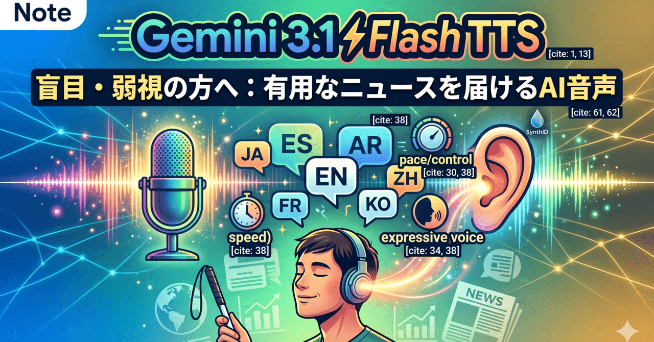 IT技術の社会実装を進める中で、常に意識すべきなのは「その技術が誰の助けになるのか」ということです。 今回Googleから発表された「Gemini 3.1 Flash TTS」は、単なる音声読み上げ技術のアップデートではありません 。より自然で、文脈に合わせた表現力を持つこのAIモデルは、特に盲目や弱視の方々にとって、情報アクセシビリティを飛躍的に向上させる可能性を秘めています。 本記事では、