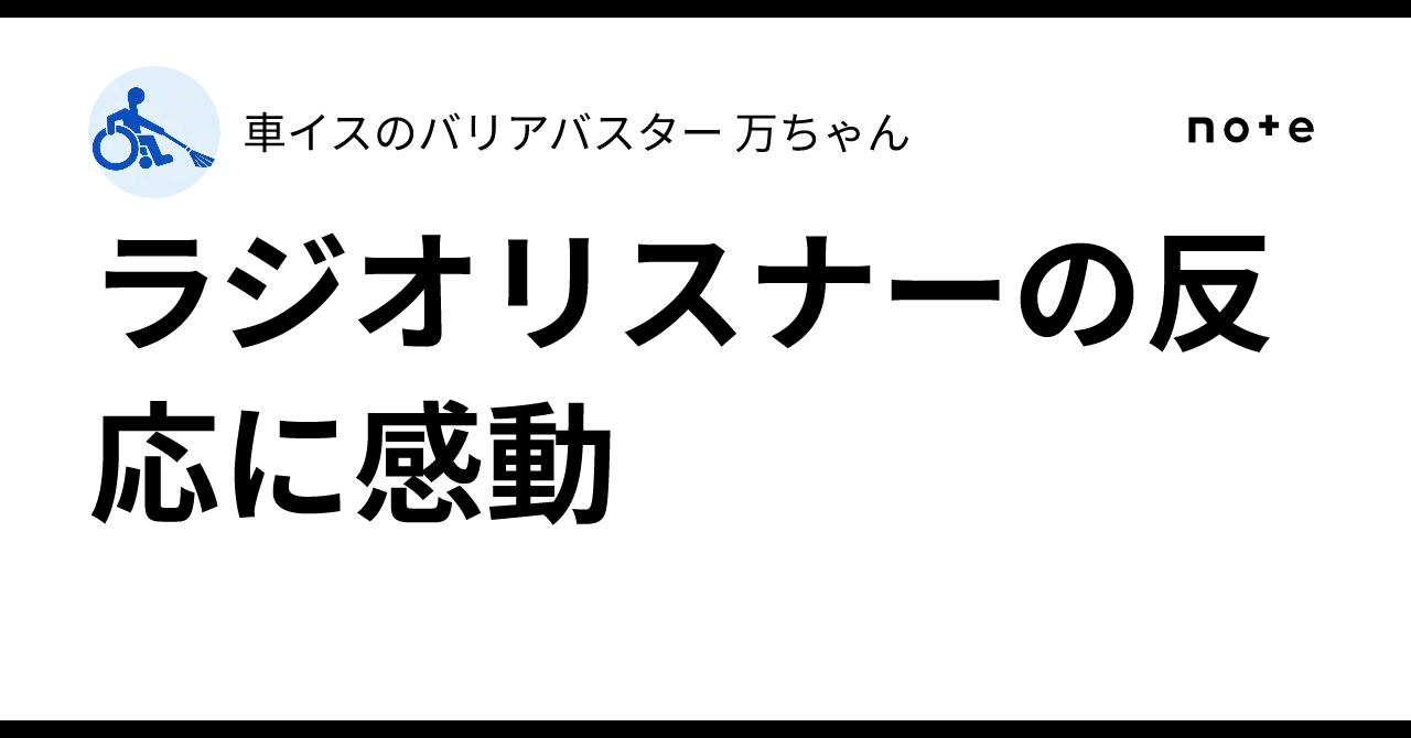 車いすユーザーである筆者が「ユニバタウン」構想をラジオで語り、肢体不自由・高齢化を見据えたバリアフリーな街づくりへのリスナーの温かい反応に感動した体験を綴っている。