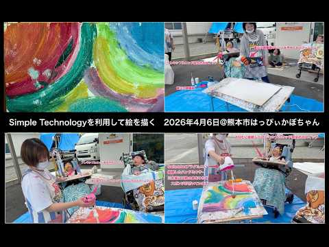 医療型特定短期入所施設「はっぴぃかぼちゃん」で、障害のある利用者たちがアクセシビリティスイッチとアームロボット「アームワンダ」を使い協力しながらドリッピング・スパッタリングアートを制作する活動の記録だ。