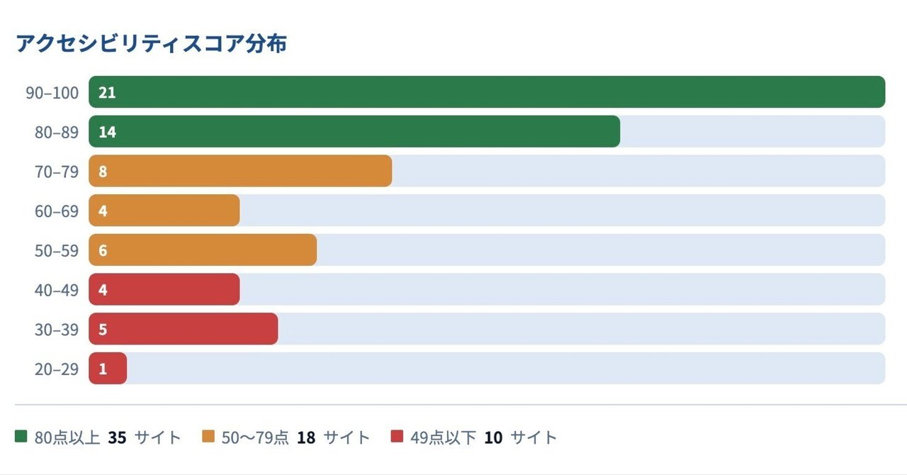 全国63中核市の公式サイトをアクセシビリティ診断ツール「AllyCheck」で自動調査したレポートで、越谷市が満点で1位となるなどスコアランキングと実態傾向をまとめている。